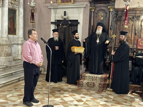 Χαιρετισμό απηύθυνε και ο διευθυντής της Δευτεροβάθμιας Εκπαίδευσης Ν. Κέρκυρας κ. Χαρίλαος Αλαμάνος, ο οποίος ευχαρίστησε τον Μητροπολίτη Κερκύρας για τη στήριξη στο έργο της εκπαιδευτικής κοινότητας και ζήτησε από τα παιδιά να έχουν εμπιστοσύνη στον Θεό, στην Παναγία και στον Άγιο Σπυρίδωνα, για να δώσουν τον καλύτερο εαυτό τους.