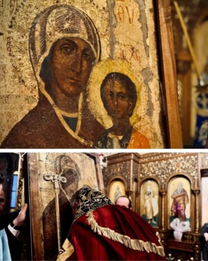 Λιτανευτικώς, τοποθετήθηκε και πάλι η ιερά Εικόνα στο θρόνο Της.