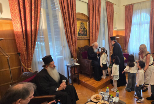 Μετά το πέρας του μνημοσύνου, ο Αρχιεπίσκοπος Αθηνών και πάσης Ελλάδος κ. Ιερώνυμος δέχθηκε στην Αρχιεπισκοπή τους παρευρισκομένους, καλωσορίζοντάς τους, συγχαίροντάς τους και ευχαριστώντας τους για τις υπηρεσίες που προσφέρουν στο ιερό αυτό έργο. Ξεκινώντας από την δική του αφετηρία, καθώς ο ίδιος υπήρξε επί πολλά έτη εκπαιδευτικός, αναφέρθηκε και εξήρε τον ρόλο των εκπαιδευτικών που έχουν στα χέρια τους το μέλλον του τόπου, τα παιδιά. Χαιρέτισε με ιδιαίτερη θέρμη τα παιδιά και τα στελέχη του Ιδρύματος, στους οποίους έδωσε και την ευλογία του.