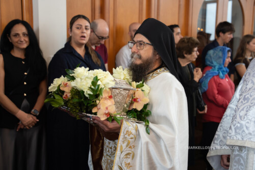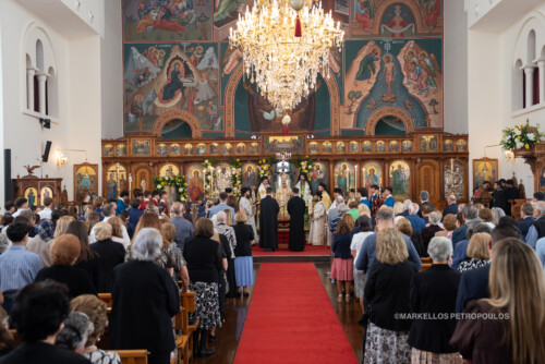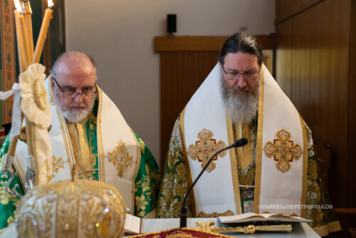 Με τον Αρχιεπίσκοπο συλλειτούργησαν οι Θεοφιλέστατοι Χωρεπίσκοποι Πέρθης κ. Ελπίδιος και Καμπερας κ. Αθηναγόρας, και οι Θεοφιλέστατοι βοηθοί Επίσκοποι Μιλητουπόλεως κ. Ιάκωβος, Ηγούμενος της Ιεράς Μονής Αγίου Γεωργίου Yellow Rock, και Κερασούντος κ. Χριστοφόρος, Πρωτοσύγκελλος της Ιεράς Αρχιεπισκοπής. Τον θείο λόγο κήρυξε, κατόπιν παρακλήσεως του Σεβασμιωτάτου, ο Θεοφιλέστατος Επίσκοπος Πέρθης κ. Ελπίδιος.