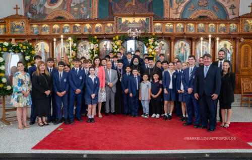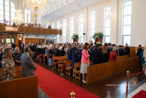 Μετά την απόλυση της Θείας Λειτουργίας, το ιερατικό ζεύγος που στέκεται ως «στυλοβάτης» της Ενορίας του Kingsford εδώ και μισό αιώνα, δέχθηκε συγχαρητήριες ευχές από τους Θεοφιλεστάτους Επισκόπους, τους κληρικούς και τους πιστούς που εκκλησιάστηκαν, μεταξύ των οποίων ήταν ο Πρόεδρος της Ενορίας κ. Ηλίας Οικονόμου και μαθητές και μαθήτριες του Κολλεγίου του Αγίου Σπυρίδωνος.