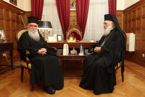 O νέος Αρχιεπίσκοπος Σινά, Φαράν και Ραϊθώ και Ηγούμενος της ιστορικής Μονής της Αγίας Αικατερίνης του Θεοβαδίστου Όρους Σινά κ. Συμεών, επισκέφθηκε μετά την Χειροτονία του, τον Αρχιεπίσκοπο Αθηνών και πάσης Ελλάδος κ. Ιερώνυμο.