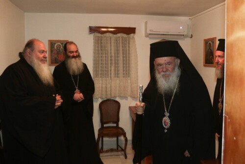Κατόπιν, ο ιερατικώς προϊστάμενος του Ιερού Ησυχαστηρίου, Πρωτοπρεσβύτερος Εμμανουήλ Παπαμικρούλης, Γενικός Αρχιερατικός Επίτροπος της Αρχιεπισκοπής, ευχαρίστησε τον Αρχιεπίσκοπο για την παρουσία και τη διαρκή υποστήριξή του, κάνοντας ιδιαίτερη αναφορά στο Ησυχαστήριο, το οποίο υπήρξε όραμα του Οσίου Πορφυρίου.