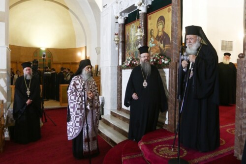 Χοροστάτησε ο Επίσκοπος Σκιάθου κ. Ιωάννης, Αρχιγραμματέας της Ιεράς Συνόδου της Εκκλησίας της Ελλάδος, ο οποίος κήρυξε τον Θείο Λόγο. Στο ιερό συμπροσευχόμενοι εκτός από τον Αρχιεπίσκοπο παρέστησαν ο Μητροπολίτης Μεγάρων και Σαλαμίνος κ. Κωνσταντίνος και ο Επίσκοπος Επιδαύρου κ. Νικόδημος, Γενικός Διευθυντής της ΕΚΥΟ.
