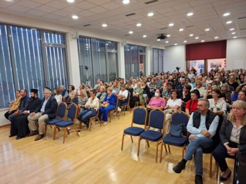Η αίθουσα εκδηλώσεων, παρά τη μεγάλη χωρητικότητά της, κατακλύστηκε από πολύ κόσμο: ένα ποικίλο ακροατήριο, κυρίως από γονείς (οι περισσότεροι από τις βιωματικές ομάδες Συμβουλευτικής Γονέων). Μεταξύ αυτών ήταν Διευθυντές Δημοτικών Σχολείων, Γυμνασίων και Λυκείων, ψυχολόγοι, κοινωνιολόγοι, κοινωνικοί λειτουργοί, καθώς και γνωστοί γιατροί της πόλης μας.