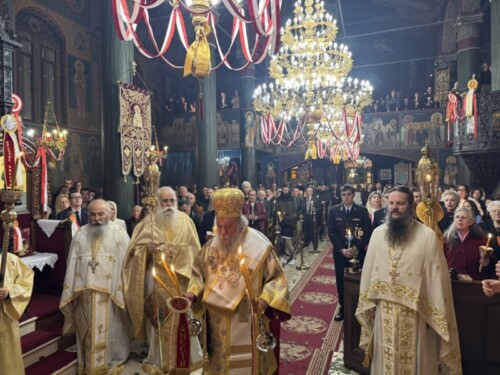 Το απόγευμα της Κυριακής του Πάσχα, 20 Απριλίου 2025, τελέστηκε στον Ιερό Μητροπολιτικό Ναό Ευαγγελιστρίας Γρεβενών ο Εσπερινός της Αγάπης με λαμπρότητα και κατάνυξη. Της Ακολουθίας προεξήρχε ο Σεβασμιώτατος Μητροπολίτης Γρεβενών κ. Δαβίδ, πλαισιωμένος από πλήθος ιερέων της Ιεράς Μητροπόλεως και με την παρουσία πολλών ευσεβών πιστών. Οι ιερείς, ενδεδυμένοι με τις εορταστικές πασχαλινές στολές τους, προσήλθαν στον Μητροπολιτικό Ναό με πομπή, ξεκινώντας από το Μητροπολιτικό Μέγαρο. Κρατώντας στα χέρια τους τις αναμμένες λαμπάδες, έψαλλαν χαρμόσυνα πασχαλινά τροπάρια, μεταφέροντας το φως και τη χαρά της Αναστάσεως. Κατά τη διάρκεια της Ακολουθίας, αναγνώστηκε το Αναστάσιμο Ευαγγέλιο σε πέντε διαφορετικές γλώσσες, ως σύμβολο της οικουμενικότητας του μηνύματος της Ανάστασης και της ενότητας των λαών μέσα στην πίστη.