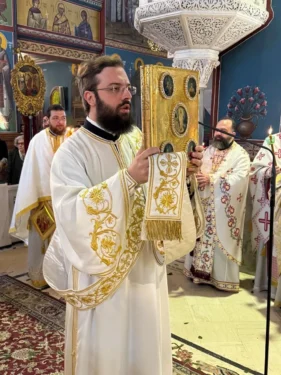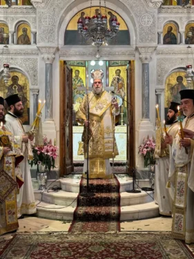 Πανηγυρικά τελέσθηκε την Κυριακή του Πάσχα, 20 Απριλίου 2025, η Ακολουθία του Εσπερινού της Αγάπης στον Ιερό Μητροπολιτικό Ναό Αγίων Αναργύρων Νέας Ιωνίας, χοροστατούντος του Σεβασμιωτάτου Μητροπολίτου Νέας Ιωνίας, Φιλαδελφείας, Ηρακλείου και Χαλκηδόνος κ. Γαβριήλ, και με τη συμμετοχή του Πανοσιολ. Αρχιμ. π. Γρηγορίου Ξενοφωντινού, ως εκπροσώπου της Ιεράς Μονής Ξενοφώντος Αγίου Όρους και του Ιερού Κλήρου της Ιεράς Μητροπόλεως.