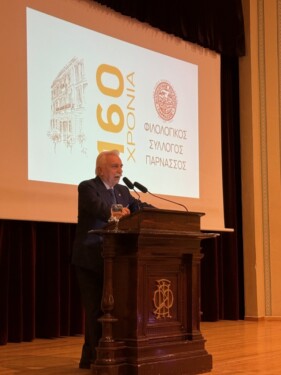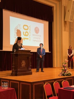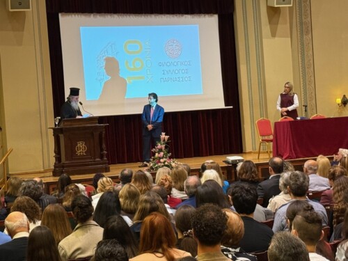 Μετά τον χαιρετισμό του Προέδρου του Συλλόγου, Καθηγητού Πανεπιστημίου κ. Βασίλειου Κωνσταντινόπουλου, εκφωνήθηκε επετειακή ομιλία από τον Πρόεδρο του Ελληνικού Ερυθρού Σταυρού, Δρ. Αντώνιο Αυγερινό, ο οποίος και αναγορεύτηκε επίτιμο μέλος του Συλλόγου. Ακολούθως ο Πρόεδρος του ΠΑΡΝΑΣΣΟΥ, Καθηγητής κ. Κωνσταντινόπουλος, αναφέρθηκε στο πρόσωπο και το έργο του Σεβ. Μητροπολίτου κ. Αμφιλοχίου, μιλώντας με λόγους επαινετικούς, απονέμοντας του «Βραβείο Κοινωνικής Αναγνώρισης». Ακολούθως ο Επίσκοπος , αφού εξέφρασε τις ευχαριστίες του προς τον κ. Πρόεδρο και την Εφορεία του Φιλολογικού Συλλόγου «ΠΑΡΝΑΣΣΟΣ», ανέφερε: «Ομολογώ ότι δυσκολεύτηκα στην θετική απόκριση της λίαν τιμητικής αυτής πρόσκλησης όχι εκ λόγων ακαταδεξίας ή ταπεινοσχημίας, αλλά δια τον λόγο ότι ουδέν άξιο τιμής θεωρούμε ότι πράξαμε ή πράττομε στην ταπεινή μας διακονία, καθώς ως αναφέρει ο Απόστολος των Εθνών Παύλος «ὅταν ποιήσητε πάντα τά διατεγαγμένα ὑμῖν, λέγετε ἀχρεῖοι δοῦλοι ἐσμέν∙ ὅτι ὅ ὀφείλομεν ποιῆσαι πεποιήκαμεν». Δια τούτο τον λόγο και αργοπορήσαμε να αποκριθούμε εις την ευγενή σας πρόσκληση. Πειστήκαμε όμως στη σκέψη ότι η τιμή αυτή δεν έχει αναφορά στο τιμώμενο πρόσωπο, αλλά στην Εκκλησία, καθώς σύμφωνα με τον αδιάψευστο λόγο του Κυρίου «Ἄλλος ἐστίν ὁ σπείρων καί ἄλλος ο θερίζων». Τέλος, ο Επίσκοπος αναφέρθηκε στην Εκκλησία, η Οποία ως είπε «.. καλείται να φανερώσει τον Χριστό, αγκαλιάζοντας και μεταμορφώνοντας τον άνθρωπο, χωρίς διακρίσεις και αποκλεισμούς, οδηγώντας τον στο «αποκεκρυμμένο κάλλος». Ακολούθησε η τελετή υποδοχής νέων, τακτικών και αντεπιστελλόντων, μελών του Συλλόγου.