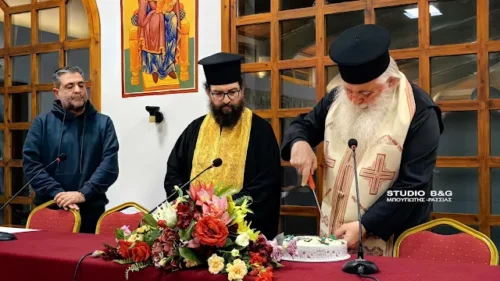 Την καθιερωμένη πρωτοχρονιάτικη βασιλόπιτα του Ραδιοφωνικού σταθμού , των εκδόσεων της Μητροπόλεως και του Βιβλιοπωλείου της Ιεράς Μητροπόλεως Αργολίδας ” Επιστροφή” , ευλόγησε και έκοψε το απόγευμα της Τρίτης 27 Ιανουαρίου 2026 , ο Μητροπολίτης Νεκτάριος, στο Πνευματικό Κέντρο του Ι.Ν. Ευαγγελίστριας Ναυπλίου.