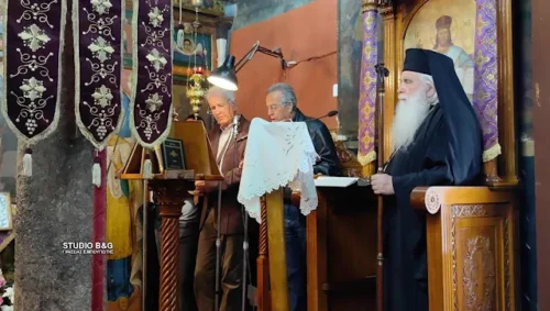 Ο Μητροπολίτης Αργολίδας στην Ακολουθία του Νυμφίου στον Βυζαντινό Ναό της Παναγίας στο Νέο Ηραίο
