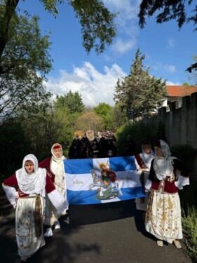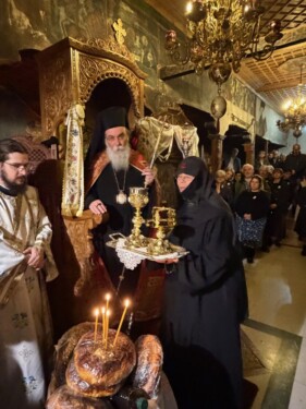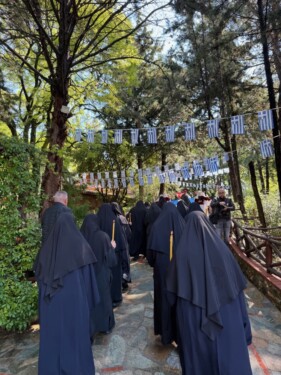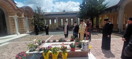Την κυριώνυμο ημέρα Αρχιερατική Θεία Λειτουργία και ιερά λιτάνευσις πέριξ του ιερού Ησυχαστηρίου. Ο Σεβ. Μητροπολίτης  κ. Αμφιλόχιος εξέφρασε τις ευχαριστίες και την ευγνωμοσύνη του προς τον “πολύπειρο, πολύτιμο, σεμνό, σοφό, φιλόκαλο, φιλόθεο, φιλάγιο και φιλόπτατρη ακρίτα Ποιμενάρχη κ. Δήμητριο, καθώς η αρχοντική και γεμάτη αγάπη Αρχιερατική καρδία του χάρισε την χαρά του συμπανηγυρισμού της ιεράς μνήμης του Αγίου Γεωργίου”. Μνημόνευσε και ευχαρίστησε, επίσης, και “… την σεβαστή Γερόντισσα Ιωάννα, την νέα κτητόρισσα του ιερού Ησυχαστηρίου, η οποία με την ευλογημένη Αδελφότητα της, μεταμόρφωσε τον απαράκλητο αυτό τόπο σε τόπο ασκήσεως, νήψεως και προσευχής όπου αναπαύονται πλήθη πιστών από την ευρύτερη περιοχή”.