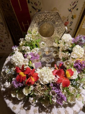Ακολούθησε πλούσια φιλοξενία προς όλους τους προσκυνητές. Ακολούθως ο προσκεκλημένος Ιεράρχης κ. Αμφιλόχιος μετέβη στην Ιερά Μονή Αγίων Ραφαήλ, Νικολάου και Ειρήνης, Γρίβας, όπου και συναντήθηκε με τον Σεβ. Ποιμενάρχη κ. Δημήτριο, ο οποίος είχε την πανήγυρι του ιερού Μητροπολιτικού του Ναού, τον ευχαρίστησε δια  ζώσης, συναντήθηκε και με την ευλογημένη Αδελφότητα της Μονής, και τέλεσε τρισάγιο επί του τάφου της μακαριστής γερόντισσας Μαρίας Τσολάκη, στην οποία και είχε παρουσιαστεί ο Άγιος Ραφαήλ με τα ενύπνια των αποκαλύψεως του, ο τάφος της οποίας ευρίσκεται στον προαύλιο χώρο της Μονής.