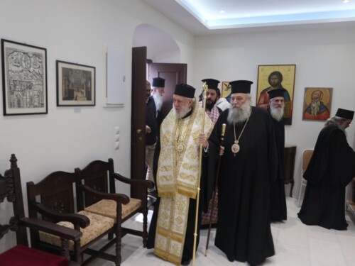 Μετά το πέρας των εκδηλώσεων, ο Ηγούμενος της Μονής, Αρχιμ. Χρυσόστομος, τον οποίο, ωσαύτως, ο Σεβασμιώτατος κ. Δωρόθεος Β΄ συνεχάρη, παρέθεσε λιτή μοναστηριακή δοχή.