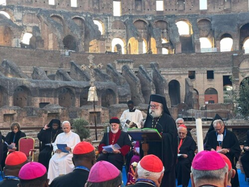 Το απόγευμα ο Πατριάρχης μαζί με τον Επίσκοπο Ρώμης Πάπα Λέων ΙΔ’ συμμετείχαν στην συνάντηση των Χριστιανών εντός του ιστορικού Κολοσσαίου της Ρώμης, στον χώρο που μαρτύρησαν χιλιάδες Χριστιανοί και όλοι μαζί προσευχήθηκαν για την ειρήνη στον κόσμο.