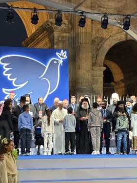 Υπάρχουν απειλές και επιθέσεις. Όμως το «σήμερα» των Χριστιανών είναι πάντα προετοιμασία για την Βασιλεία των Ουρανών….. Εδώ σήμερα είμαστε μια οικογένεια για να προστατεύσουμε την ζωή, να αναζητήσουμε νέους δρόμους διαλόγου…. Μέσα σε αυτήν την παγκόσμια κρίση ο Θεός μας καλεί ξανά….. Επομένως, στο όνομα του Κυρίου ας τολμήσουμε να αγωνιστούμε για την ειρήνη, ας τολμήσουμε να προσευχηθούμε για την ειρήνη, ας τολμήσουμε στη δράση και ας γίνουμε εργάτες της ειρήνης του Θεού, ας τολμήσουμε στην αγάπη για όλους τους πληγωμένους, ας εμπιστευθούμε την ζωή μας στον Θεό της ειρήνης και της αγάπης».