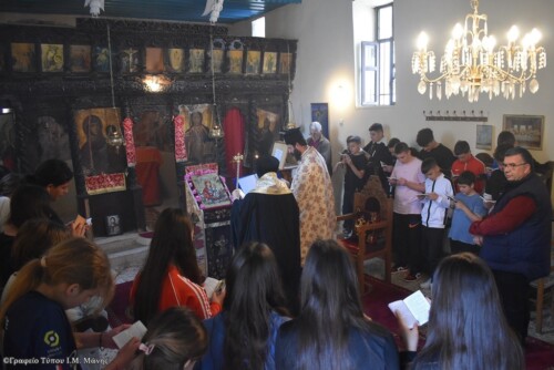 Μαζί του ἦταν ὁ ἐφημέριος τῆς ἐνορίας π. Γεώργιος Ζαρειφόπουλος, ὁ Διευθυντής τοῦ Γυμνασίου καί οἱ ἐκπαιδευτικοί.