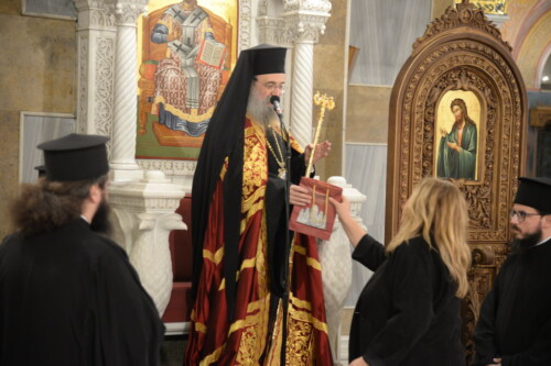Εὐχήθηκε στὰ παιδιὰ καλὴ πρόοδο καὶ σὲ ὅλους πᾶσαν εὐλογίαν καὶ χάριν παρὰ κυρίου διὰ πρεσβειῶν τοῦ Ἀποστόλου Ἀνδρέου τοῦ Πρωτοκλήτου, σὲ ὅλους δέ ἔδωσε ἀπὸ μία εἰκόνα τοῦ Ἀποστόλου Ἀνδρέου.