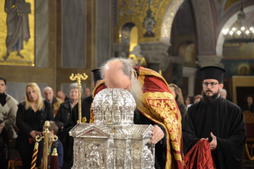 Μὲ ἱερὰ κατάνυξη ἐτελέσθη, ἡ Ἀκολουθία τῶν Xαιρετισμῶν, πρὸς τὸν Πρωτόκλητον Ἀπόστολον Ἀνδρέα, στὸν Ἱερὸ Ναό του στὴν Πάτρα, χοροστατοῦντος τοῦ Σεβασμιωτάτου Μητροπολίτου Πατρῶν κ.κ. Χρυσοστόμου.