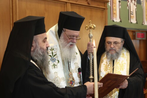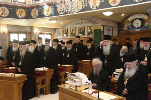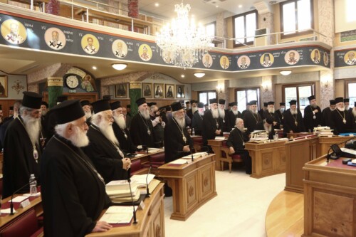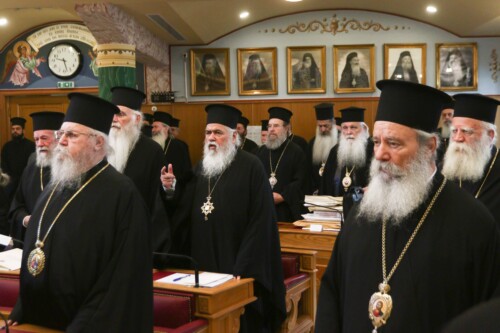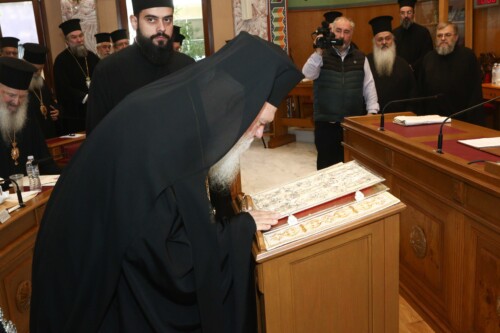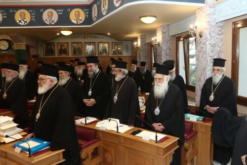 Ακολούθησε συζήτηση σχετικώς προς την Προσφώνηση του Μακαριωτάτου, η οποία και έγινε αποδεκτή από το Σώμα της Ιεραρχίας.