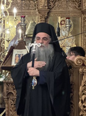 Στην ιερά ακολουθία χοροστάτησε ο Θεοφιλέστατος Επίσκοπος Αλμωπίας κ. Στέφανος, ο οποίος με την παρουσία και την ευλογία του ενίσχυσε πνευματικά το πολυπληθές εκκλησίασμα.
