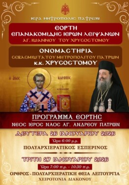 Ὀνομαστήρια Σεβασμιωτάτου Μητροπολίτου Πατρῶν κ.κ. ΧΡΥΣΟΣΤΟΜΟΥ