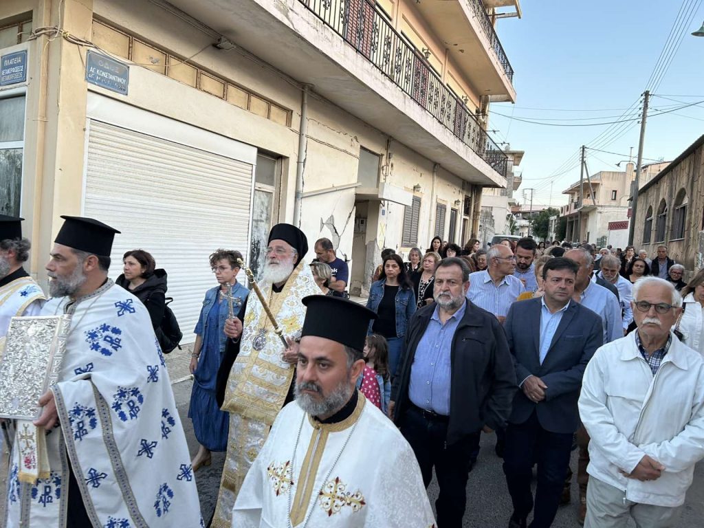 Παραμονή της εορτής των Αγίων Κωνσταντίνου και Ελένης, Τρίτη 20 Μαΐου, ο Σεβ. Μητροπολίτης Αρκαλοχωρίου , Καστελλίου και Βιάννου χοροστάτησε στον Ναό του Αγίου Νεκταρίου στο παλαιό Αρκαλοχώρι, όπου τελέστηκε ο πανηγυρικός εσπερινός του σεισμόπληκτου Ιερού Καθεδρικού Ναού Αρκαλοχωρίου, που πανηγυρίζει το αριστερό κλίτος του. Στην συνέχεια, ακολούθησε περιφορά της εικόνας των Αγίων στους κεντρικούς δρόμους της πόλεως και ευλογήθηκαν οι προσφερόμενοι άρτοι.