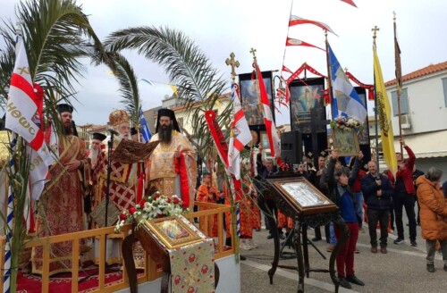 Στην κεντρική πλατεία της πόλεως, ο Σεβασμιώτατος εκφώνησε ομιλία, έχοντας ως κεντρικό θέμα τα λόγια του Κυρίου· «Θαρσείτε, εγώ νενίκηκα τον κόσμον» (Ιωάν. ιστ΄, 33), τονίζοντας ότι η Ανάσταση προσφέρει ελπίδα, χαρά και την όντως ειρήνη.