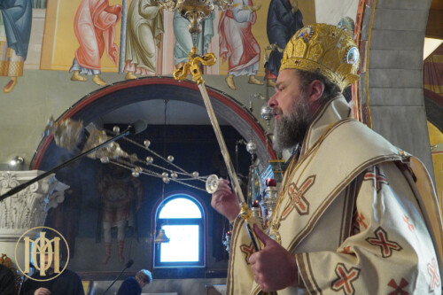 Στην ακολουθία του Όρθρου χοροστάτησε, ενώ προεξήρχε κα στη Θεία Λειτουργία, ο Παναγιώτατος Μητροπολίτης Θεσσαλονίκης κ. Φιλόθεος, ο οποίος κήρυξε τον θείο λόγο στο εκκλησίασμα, αμέσως μετά την ανάγνωση του ιερού Ευαγγελίου.