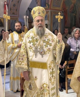 Τέλος, αναφέρθηκε σύντομα στο βαθύτερο νόημα της λέξεως “Πολιούχος”, τονίζοντας πως δεν είναι απλώς ένας Άγιος, αλλά ο πνευματικός πατέρας του τόπου, εκείνος που πρεσβεύει, προστατεύει και συνοδοιπορεί με τον λαό στον αγώνα της πίστεως και της ζωής.