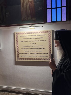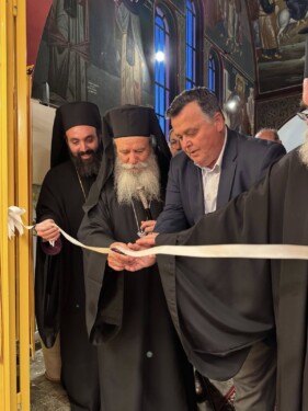 Με την σειρά τους ο π. Χαράλαμπος Μυλωνόπουλος και ο κ. Μηνάς Χατζηχρήστου ευχαρίστησαν τον Σεβασμιώτατο για την παροχή της σχετικής κανονικής ευλογίας για την πραγματοποίηση του παραπάνω έργου και την πατρική του αγάπη καθώς επίσης και τον Πρωτοσύγκελλο Αρχιμ. Νεκτάριο Δαρδανό (Ιστορικό – Αρχαιολόγο & Ιστορικό Τέχνης) για την άριστη συνεργασία και την συμμετοχή του δεύτερου στην διαμόρφωση του χώρου και στην προβολή των κειμηλίων.