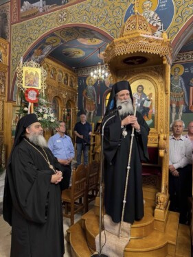 Ο Σεβασμιώτατος ευχαρίστησε θερμά τους συντελεστές του παραπάνω έργου που αποτελεί μια κιβωτό πολιτισμού και αναδείξεως των ιερών σεβασμάτων των ευλαβών προγόνων μας και πιο συγκεκριμένα συνεχάρη τον δραστήριο εφημέριο του ως άνω Ι. Ναού π. Χαράλαμπο Μυλωνόπουλο για την επιμέλεια και την σχετική μέριμνα και φροντίδα.