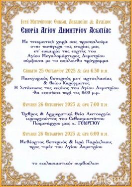 Πανήγυρις Ιερού Ναού Αγίου Δημητρίου Ασωπίας