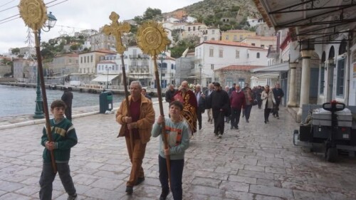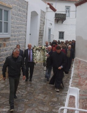 Έψαλλε ο πρωτοψάλτης του Ιερού Καθεδρικού Ναού Ύδρας και καθηγητής στην Σχολή Βυζαντινής Μουσικής της Ιεράς Μητροπόλεως κ. Άγγελος Χρ. Διαμαντόπουλος.