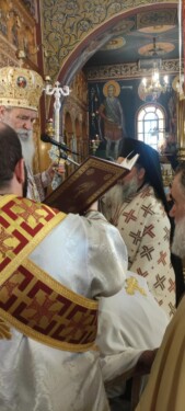 Προ της απολύσεως της Θ. Λειτουργίας εν Εκκλησία πληθούσει χειροθέτησε σε πρωτοπρεσβύτερο τον δραστήριο εφημέριο του εν λόγω Ι. Ν. π. Χαράλαμπο Μυλωνόπουλο .