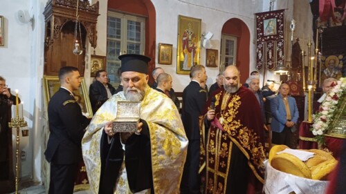 Προ της απολύσεως ο αναπληρωτής Πρωτοσύγκελλος Αρχιμ.π. Θεόδωρος Θεοδοσίου μετέφερε τις πατρικές ευχές του Σεβασμιωτάτου Μητροπολίτου ύδρας, Σπετσών και Αιγίνης κ. ΕΦΡΑΙΜ ο οποίος εφέτος θα προστή της εορτής εις την ενορία της Αγίας Βαρβάρας του Δήμου Δάφνης – Αττικής ,όπου και τίθεται σε προσκύνημα η Τιμία Δεξιά του Αγίου Νεκταρίου.