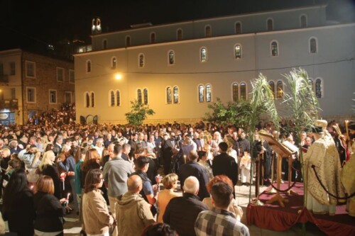 Στόν Μητροπολιτικό Ναό τῆς πόλεως τῆς Ναυπάκτου, τόν Ἱερό Ναό τοῦ Ἁγίου Δημητρίου τελέστηκε ἡ ἱερά ἀκολουθία τῆς Ἀναστάσεως, δηλαδή ἡ ἔναρξη τοῦ Ὄρθρου ἔξω ἀπό τόν Ναό σέ μιά κατανυκτική καί συγχρόνως λαμπρά τελετή μέ πολλούς ἀνθρώπους, ἀπό τόν Σεβασμιώτατο Μητροπολίτη Ναυπάκτου καί Ἁγίου Βλασίου κ. Ἱερόθεο, συμπαριστούμενο ἀπό τούς Ἱερεῖς τοῦ Ναοῦ, π. Θωμᾶ Βαμβίνη, Γενικό Ἀρχιερατικό Ἐπίτροπο, π. Παναγιώτη Χαντζή καί τόν Διάκονο π. Παΐσιο Παρασκευᾶ καί συνεχίστηκε ὁ Ὄρθρος καί ἡ θεία Λειτουργία στόν Ναό.