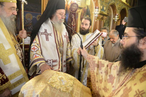 Κατά τήν διάρκεια τῆς Θείας Λειτουργίας ἐτέλεσε τήν εἰς Διάκονον χειροτονίαν τοῦ εὐλαβεστάτου Λεωνίδου Μελίσσης, ὁ ὁποῖος ὑπηρετοῦσε μέχρι τώρα ὡς Ἱεροψάλτης στήν Ἑνορία Ἁγίου Νεκταρίου Μοίρα.