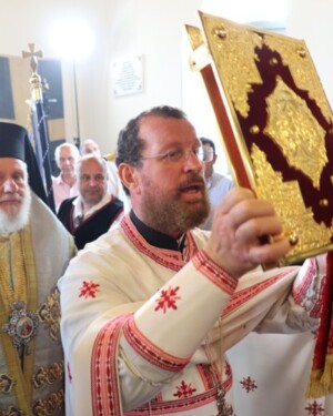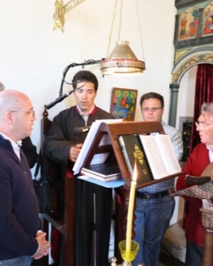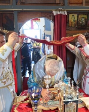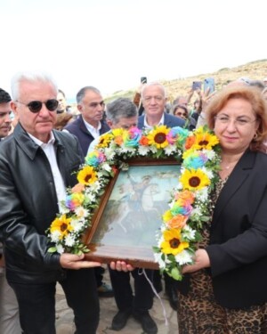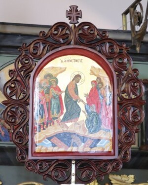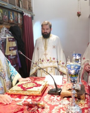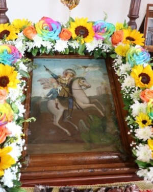 Στη συνέχεια, πραγματοποιήθηκε μικρή λιτάνευση των Εικόνων της Αναστάσεως και του Αγίου Γεωργίου.