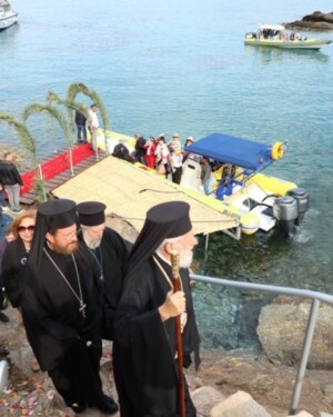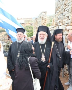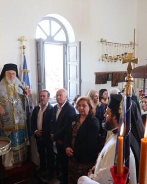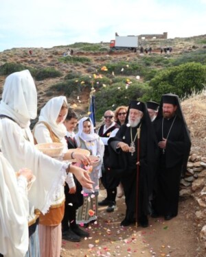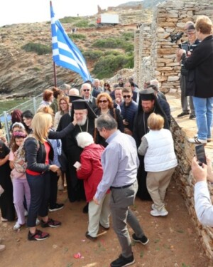 Στον Ιερό Ναό του Αγίου Γεωργίου, στη Μακρόνησο, ιερούργησε σήμερα το πρωί ο Σεβασμιώτατος Μητροπολίτης Σύρου κ. Δωρόθεος Β΄, πραγματοποιώντας το καθιερωμένο ετήσιο, κατά την πασχαλινή περίοδο, προσκύνημα στη μαρτυρική νήσο, με τη συμμετοχή του Ἀρχιερατικού Επιτρόπου Κέας, Πρωτοπρ. Ελευθέριου Δεμένεγα, του παρά τη Ιερά Συνόδω Γραμματέως Αρχιμ. Χερουβείμ Μουστάκα και του Αρχιμ. Κωνσταντίνου από την Ιερά Μητρόπολη Λαυρεωτικής. και την παρουσία του Μεγάλου Ευεργέτου της Ιεράς Μητροπόλεως και του Ναού, τον οποίο εκ θεμελίων ανακαίνισε το 2014, κ. Αθανασίου Μαρτίνου, των Δημάρχων Κέας, Κύθνου, Μαραθώνος, Σαρωνικού και Λαυρίου, του Λιμενάρχη Λαυρίου, της Προέδρου της Αδελφότητος Ανωμεριτών Μυκόνου, Μελών του Πολιτιστικού Συλλόγου των εν Αθήναις Θηραίων “Η ΑΓΙΑ ΕΙΡΗΝΗ”, που εδρεύει στο Λαύριο, και πλήθους πιστών και προσκυνητών από την Κέα, την Κύθνο, το Λαύριο, και άλλες περιοχές της Ελλάδος.