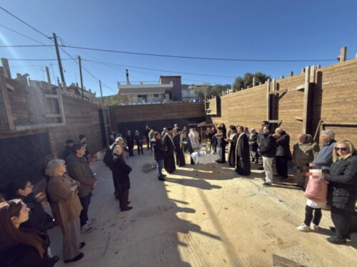 Στη συνέχεια ο Σεβασμιώτατος τέλεσε τον Αγιασμό της θεμελίωσης του Ναού των Αγίων Κωνσταντίνου και Ελένης και Αγίας Ειρήνης Χρυσοβαλάντου στον οικισμό Οντάθι Δροσιάς της ενορίας Αγίου Γεωργίου. Ο Σεβασμιώτατος ευχαρίστησε την δωρήτρια του οικοπέδου για την ανέγερση του Ναού κ. Αμβροσία Τσαλαμανιού, καθώς και τους εφημερίους του Ναού Αγίου Γεωργίου Δροσιάς π. Λάμπρο Συμιακάκη και π. Διονύσιο Σούτζιο, κι όσους συμβάλλουν στην ανέγερση του Ναού, και αναφέρθηκε στη σημασία που έχει η ανέγερση ενός Ναού, που αποτελεί τόπο κοινής λατρείας.