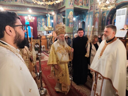 Το πρωί του Σαββάτου, 13 Δεκεμβρίου 2025, ο Σεβασμιώτατος κ. Χρυσόστομος χοροστάτησε κατά τον Όρθρο, προέστη στη Θεία Λειτουργία και κήρυξε τον θείο λόγο στο Ενοριακό Ι. Ναό Μεταμορφώσεως του Σωτήρος Ψαχνών, επί τη μνήμη του αγίου μάρτυρος Ευστρατίου, του οποίου το όνομα φέρει ο νέος εφημέριος της Ενορίας, πρωτοπρεσβ. Ευστράτιος Καρατσούλης.