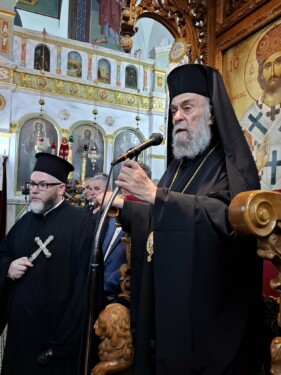 Στην προσφώνηση του ο Σεβασμιώτατος κ. Σεραφείμ ευχαριστήσε την χορωδία των εκλεκτών ιεροψαλτών οι οποίοι προσήλθαν απο την Κάρυστο ώστε να τιμήσουν την εορτή του Οσίου Πορφυρίου