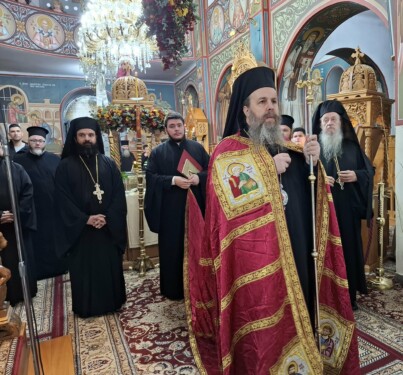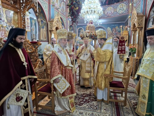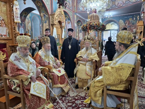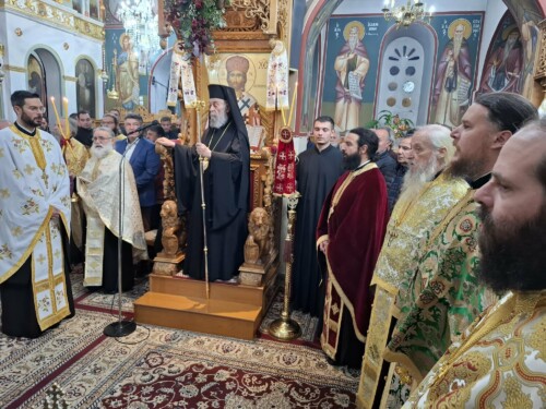 Ακολούθως έλαβε χώρα Πολυαρχιερατικό Συλλείτουργο προεξάρχοντος του Πρυτάνεως της Ιεραρχίας Σεβασμιωτάτου Μητροπολίτου κ. Σεραφείμ μετά των συνιερουργών Σεβασμιωτάτων Μητροπολιτών Ειρηνουπόλεως κ. Νικάδρου Χαλκίδος κ. Χρυσοστόμου και Άνω Νευροκοπίου κ. Σεραφείμ.