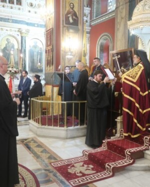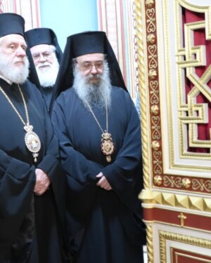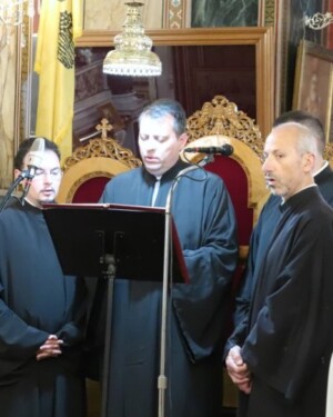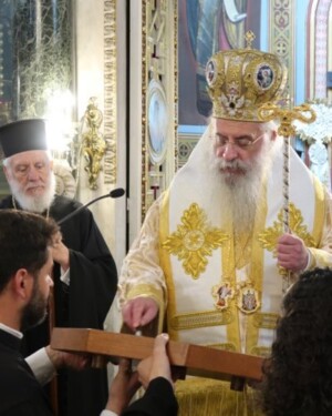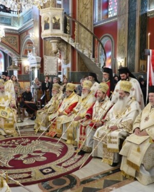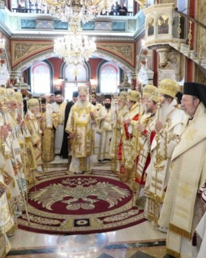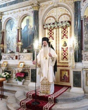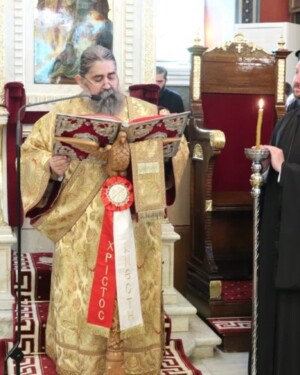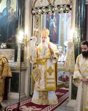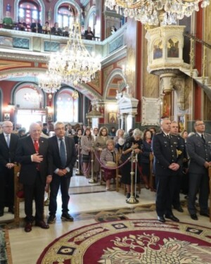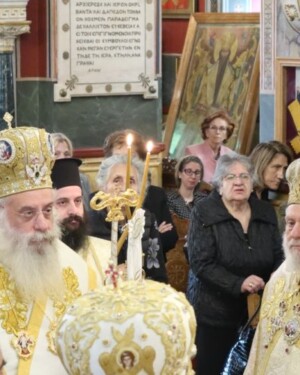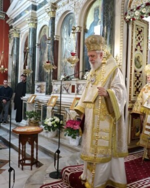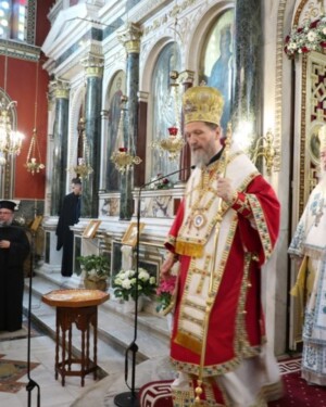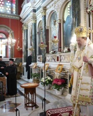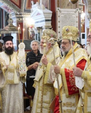 Μετά τοι πέρας της Θείας Λειτουργίας, ο Σεβασμιώτατος κ. Επιφάνιος ευχαρίστησε θερμά τους Αρχιερείς, τους Κληρικούς, τα Μοναχικά Τάγματα, τους Ιεροψάλτες και τους Επιτρόπους του Ναού και εδέχθη τις ευχές των Αρχών και του πιστού λαού, ο οποίος είχε κατακλύσει κυριολεκτικά το Ναό.