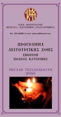 Πρόγραμμα λειτουργικής ζωής ενοριών Κατερίνης για την Μ. Τεσσαρακοστή