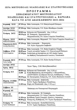 Πρόγραμμα Μητροπολίτη Νεαπόλεως, Βαρνάβα κατά το Άγιο Δωδεκαήμερο