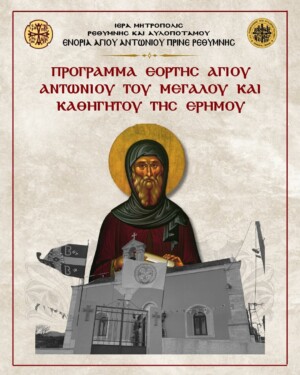 Πρόγραμμα Πανηγύρεως Ιερού Ενοριακού Ναού Αγίου Αντωνίου Πρινέ Ρεθύμνης