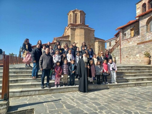 Ολοκληρώνοντας την όμορφη αυτή πνευματική επικοινωνία, ο Σεβασμιώτατος διένειμε σε όλους τους μαθητές και τους εκπαιδευτικούς αναμνηστικές ευλογίες.