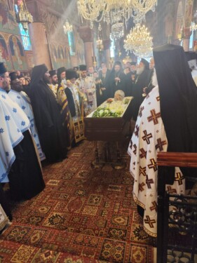 β) ἐνωρίτερον, τήν αὐτήν ἡμέραν, τελεσθήσεται ἀρχιερατική ἐξόδιος Θεία Λειτουργία ὑπέρ ἀναπαύσεως τῆς ψυχῆς τοῦ ἀειμνήστου,