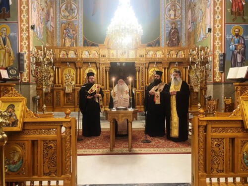 Ο Σεβασμιώτατος ευλόγησε την Βασιλόπιτα της συνάξεως και εξέφρασε τη χαρά και τη συγκίνησή του για τη δυναμική παρουσία των νέων, τονίζοντας ότι στα πρόσωπά τους βλέπει «το μέλλον της Εκκλησίας και της πατρίδας μας». Αναφέρθηκε, επίσης, με ιδιαίτερη αγάπη στην πολυετή κοινή του πορεία με τον π. Χαρίλαο, επισημαίνοντας ότι από τα μαθητικά του χρόνια βρισκόταν κοντά στην Εκκλησία και ότι, όταν ο ίδιος ανέλαβε την ποιμαντική ευθύνη της Τοπικής Εκκλησίας, «στάθηκε δίπλα μου από την πρώτη στιγμή». Σε άλλο σημείο της ομιλίας του, ο Σεβ. Ποιμενάρχης μας αναφέρθηκε στο μυστήριο της Ιερωσύνης, προτρέποντας τους νέους να μη φοβηθούν το ενδεχόμενο μιας κλήσεως από τον Θεό: «Να μην φοβηθείτε, αν κάποια στιγμή νιώσετε την ανάγκη να κάνετε κάτι πιο σπουδαίο στη ζωή σας. Η εποχή μας έχει ανάγκη από αυθεντικούς ανθρώπους». Ακόμη, στάθηκε ιδιαίτερα στη σημασία της συμμετοχής στη Θεία Λειτουργία, εξηγώντας ότι η λαμπρότητα των ιερών αμφίων και της εκκλησιαστικής λατρείας δεν αποτελεί εξωτερικό στοιχείο εντυπωσιασμού, αλλά «εικόνα της Βασιλείας του Θεού», την οποία η Εκκλησία διασώζει μέσα στον χρόνο ως εμπειρία πίστεως και ελπίδας. Ακόμη, αναφέρθηκε στη μεγάλη αξία της ελληνικής γλώσσας, επισημαίνοντας ότι η Εκκλησία διατηρεί το πρωτότυπο κείμενο της Αγίας Γραφής και της λατρευτικής μας παραδόσεως, καλώντας τους νέους να καλλιεργούν τη γλώσσα και να εμβαθύνουν στα νοήματα της πίστεως. Ολοκληρώνοντας την ομιλία του, ευχήθηκε σε όλους καλή πρόοδο στις σπουδές τους, πνευματική ενίσχυση και σταθερή πορεία κοντά στον Χριστό, ενώ ευχήθηκε στον π. Χαρίλαο για την ονομαστική του εορτή, εκφράζοντας την ευγνωμοσύνη του για τη διακονία και την προσφορά του στην κατήχηση των νεών.